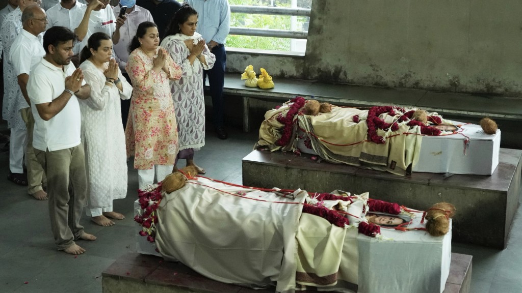 ▲印航空难死者陆续出殡,家属情绪激动。 美联社