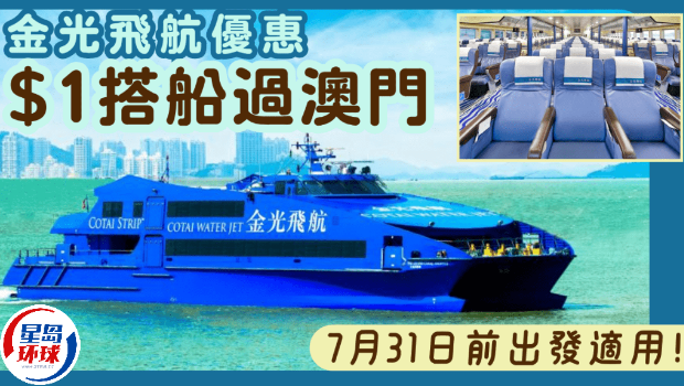 金光飞航船飞$1优惠!成人船票往返上环/澳门凼仔码头