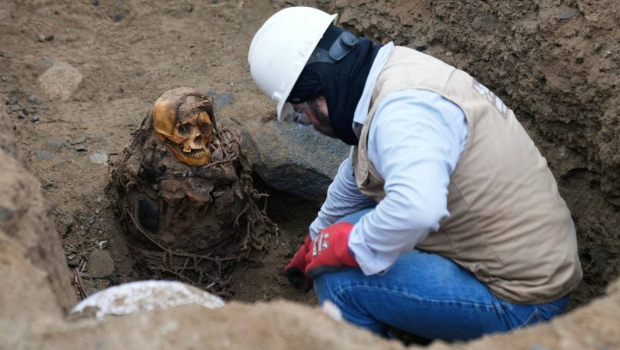 美联社报道,秘鲁首都利马(Lima)近日发现一具千年木乃伊。施工人员在距地表仅半米处进行挖掘以扩建天然气管道,意外发现一具约1000年前的前印加时期木乃伊。