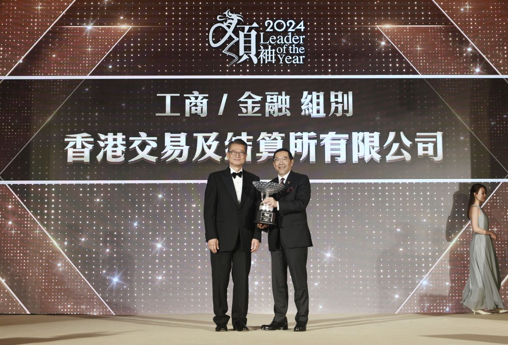 工商/金融组别,由香港交易及结算所有限公司获得。香港交易所主席唐家成表示,港交所非常荣幸能获“杰出领袖奖”,肯定了我们过去一年在落实多项市场改革及提升市场基建的努力,包括实施恶劣天气维持市场运作的安排。