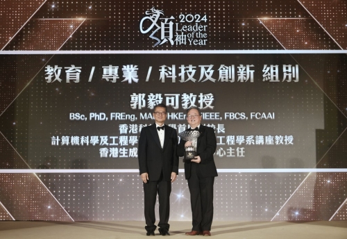 教育/专业/科技及创新组别,由香港科技大学首席副校长、香港生成式人工智能研发中心主任郭毅可教授获得。郭毅可表示,非常荣幸获得奖项,强调这是一种荣耀和责任。