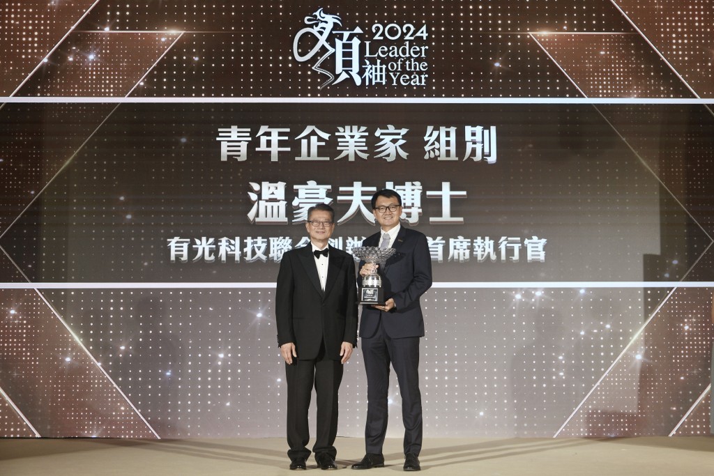 青年企业家组别由有光科技联合创办人兼首席执行官温豪夫博士夺得。温豪夫表示,自己感觉非常兴奋和惊喜,他指公司是2015年成立,但该时期的世界并非创科热潮,形容当时从事高科技公司是非常高风险,更笑言“当时同人讲做人工智能会俾人认为是骗子。”