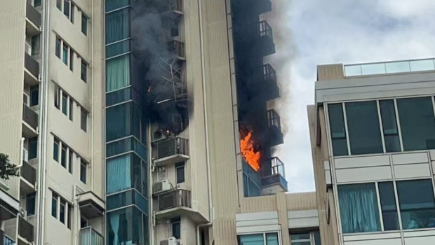将军澳唐贤街23号帝景湾2座,今(21)日早上7时46分,一名女子报案指住所起火,其后警方亦接获多个报案,指有单位发生火警,现场所见,单位火光熊熊,冒出浓烟,黑烟遮盖半个天空。 单位内住有一对姐妹及一名外佣,其中姐姐额头烧伤,需送院治理,另两人则无恙。 消息指,女住户在睡房内燃点香薰后睡着起火。