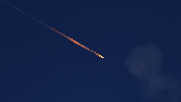 ▲一枚碎片从空中坠落,在以色列与伊朗冲突期间,以色列“铁穹”系统拦截来自伊朗的导弹后可见此景。(图/路透)
