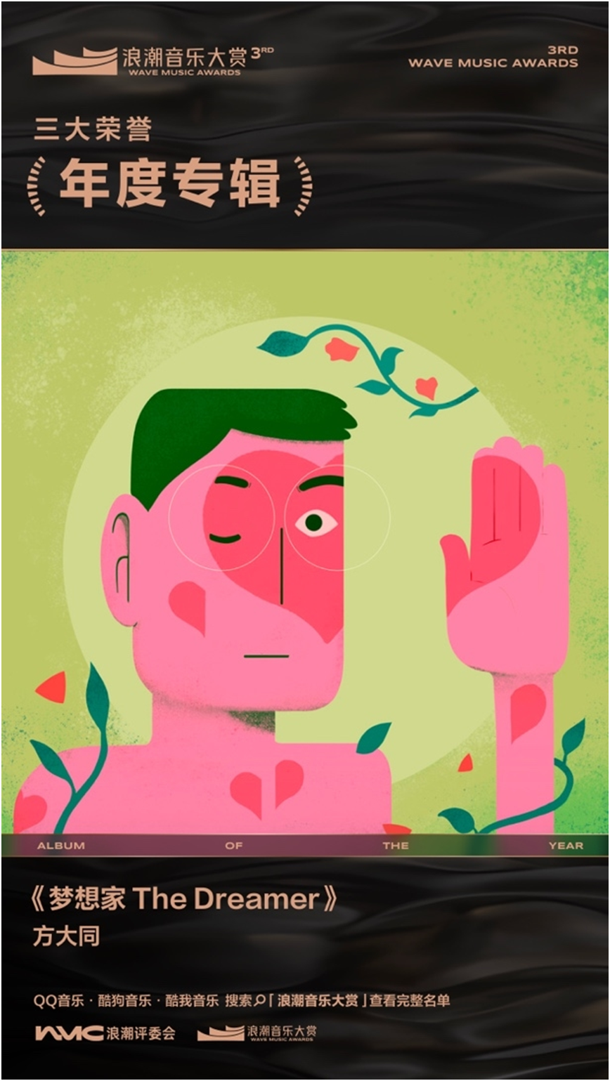 方大同最后一张专辑《梦想家The Dreamer》为他赢得年度专辑及最佳男歌手的荣誉,方大同家人来到现场代领荣誉,他们在感言中真诚分享的大同故事与精神感动了现场行业人士与众多观众。