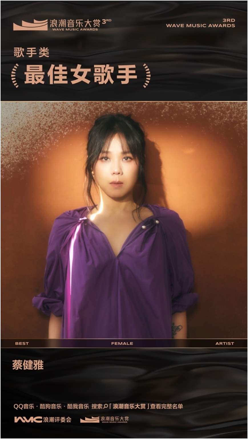 演出现场,荣获最佳女歌手的蔡健雅带来《不够善良的我们:戏剧音乐设计》专辑中的《芬兰距离》,娓娓道来的动听歌声感动全场。浪潮音乐大赏一直坚持给予品质新人展现的舞台,荣获最佳新人的JUD陈泳希、与入围最佳新人的张醒婵分别演唱《相濡以沫》、《从A到Z》,唱出了新人的创作锋芒。入围本届最佳团体/组合的莫非定律乐团现场带来了《最蓝梦核》的表演。