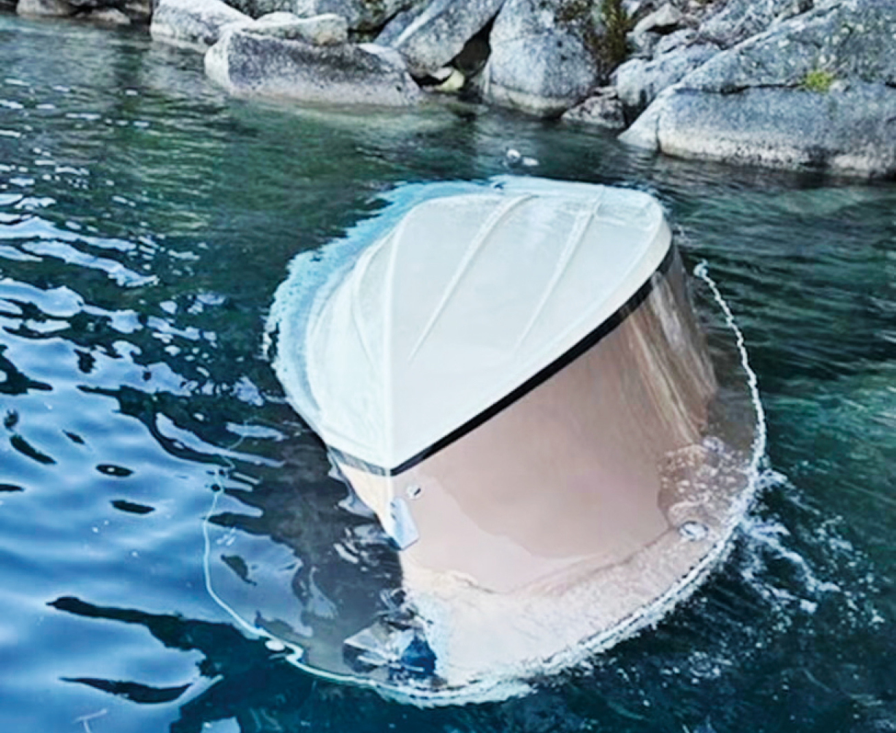 ▲一艘27呎游艇在太浩湖近鲁比肯角翻覆。 美联社一艘27呎游艇在太浩湖近鲁比肯角翻覆。 美联社