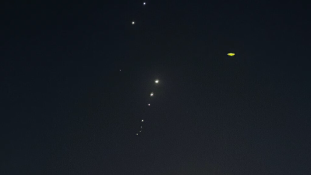 ▲卡塔尔首都多哈上空23日可见伊朗发射的导弹。(路透社)