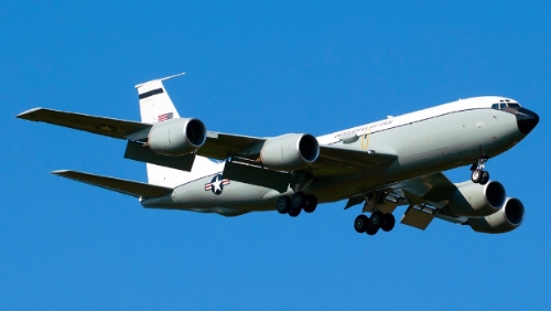 ▲美军动用能感测核讯号的WC-135R特种侦察机加入轰炸行列。(美国空军官网)