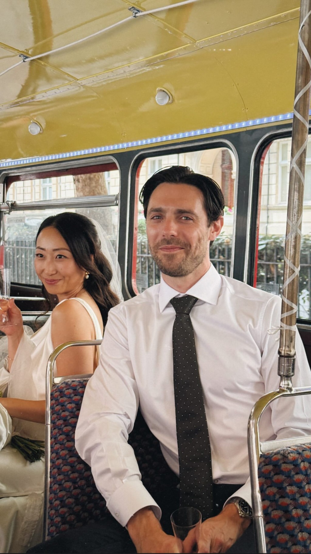 苗彤近日在IG的限时动态曝光一辑婚纱照,款式简约并不花巧,正面以修身设计长至脚眼,但背面暗藏玄机,大露背展现魅力。苗彤戴上长长拖地的头纱,手执花球,笑得极甜,其中一张相见到有外籍男子入镜。
