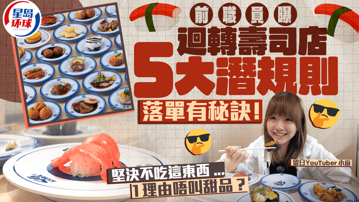 回转寿司深受大众欢迎,但其内部运作鲜有人知。 近日,在日港人YouTuber小麻就拍片公开了“在回转寿司店打工后才发现的事?”。 她在日本人气回转寿司品牌“藏寿司(くら寿司KURA SUSHI)”兼职数月,熟知店内厨房运作,她不单公开分享了点餐秘诀,更指有一类食物是作为员工的她绝对不会吃!