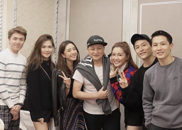 ▲汤镇业家族盛产靓女,包括外甥李子熙(左一)、汤乐瑶(左二)、汤洛雯(右三),还有他本人所生的女儿汤爱嘉(左三),最右边的则是汤镇业一对已经入行的孖仔汤君慈、汤君耀。