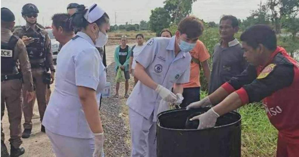 据《中时新闻网》综合泰媒报导,这起事件是由52岁的男子查农(Chanon)发现,他在23日经过华富里府鹄三廊县(Khok Samrong)一处道路翻修工程的工地时,正巧朝路边装满沥青的铁桶看了一眼,却发现里头泡着一个人。由于对方没有动弹,查农以为自己发现了一具尸体,吓得立刻报警。