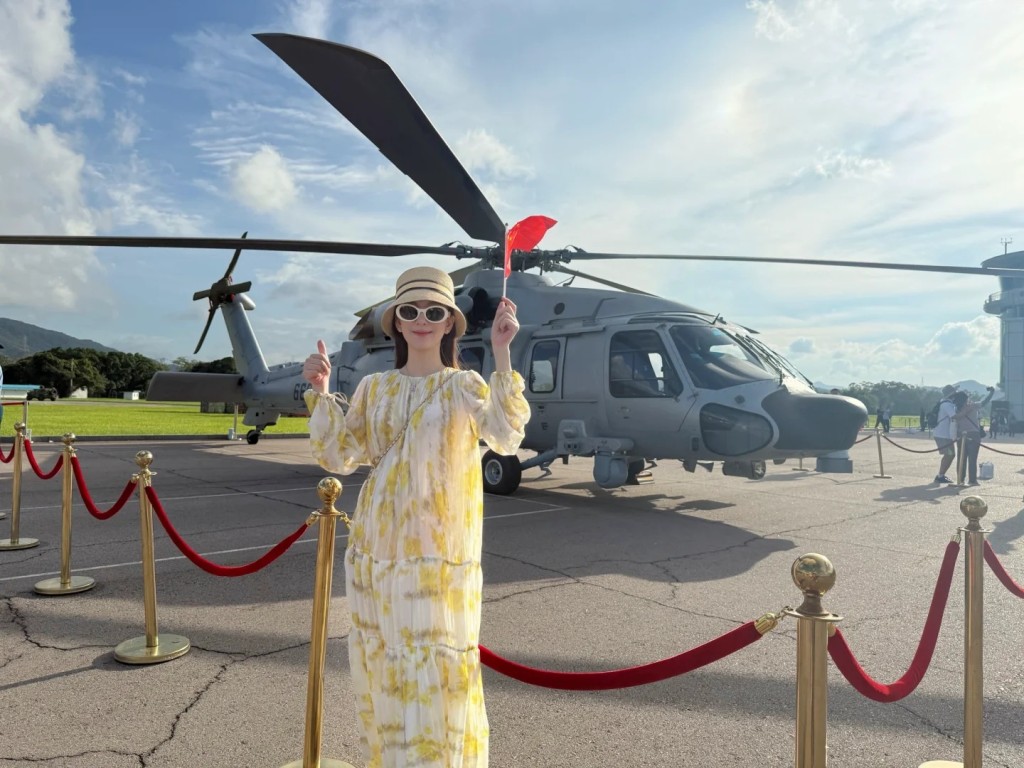 ▲方媛宣布怀三宝后首次更新社交网,和两个女儿去参观驻港空军开放日活动。