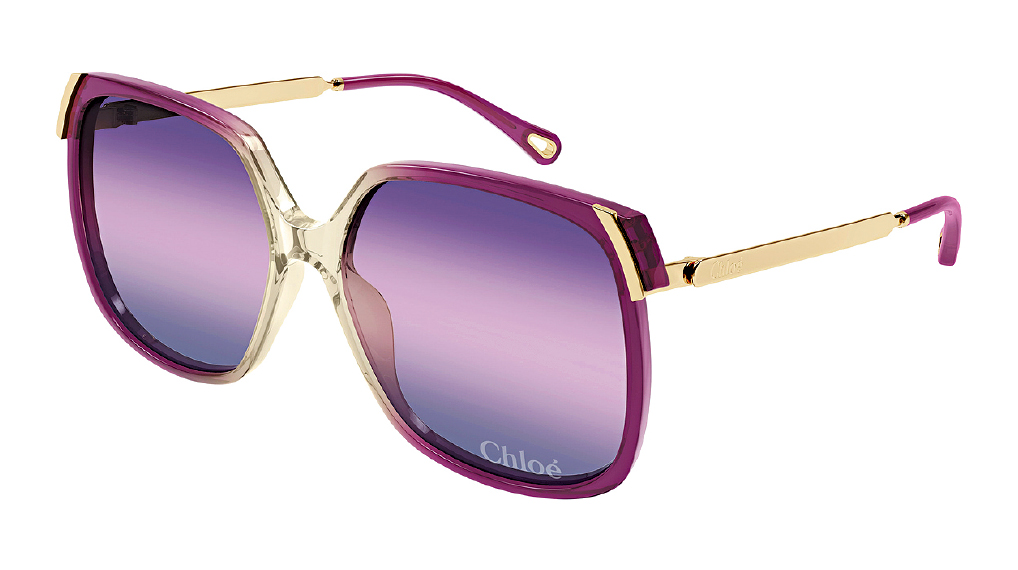 ▲Chloé特大方框太阳眼镜配以醋酸纤维前框和金属镜臂,复古的三层渐变色镜片,其中左镜片更以雷射雕刻上品牌标志。($3,340)