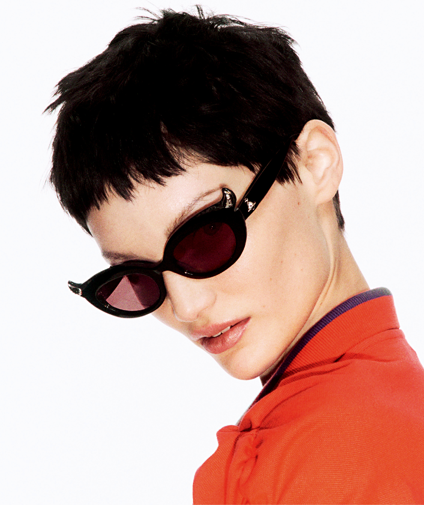 另一潮流就是渐变色镜片配搭金属镜框,同样可以营造复古风格,除方形Oversize镜片外,猫眼形继续流行,而从面积与超大镜片反差颇大的杏形镜片,都是今夏的热门选择,若是配上粗框的话,必定是Y2K造型必备!至于属于长青之选的飞行员款式,配上大热回归的双鼻梁设计,更入型入格。
