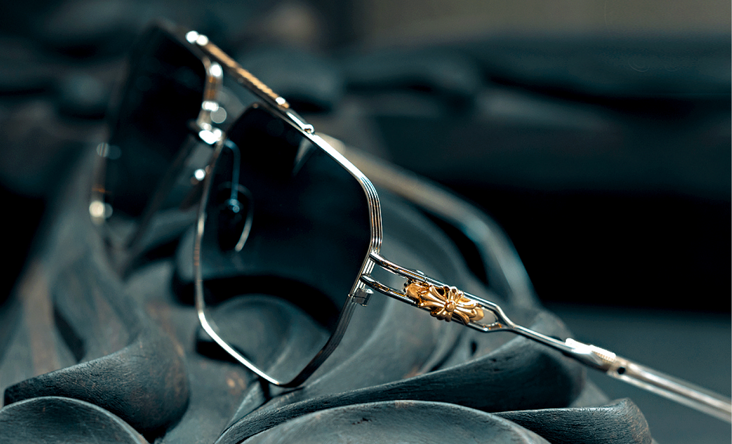 时尚界向来丰俭由人,太阳眼镜由几百至逾十万港元都有。Chrome Hearts与溥仪眼镜就刚刚推出了全新的22K金配饰系列,包罗光学及太阳眼镜,每个细节都经匠心铸造,经过多重工序手工抛光,呈现纯金的自然光泽与温度。