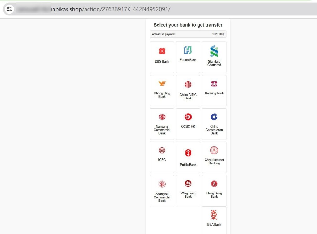 ▲根据事主提供的钓鱼链接截图,网址字眼与二手买卖平台相若,银行标识亦原样抄袭出来。