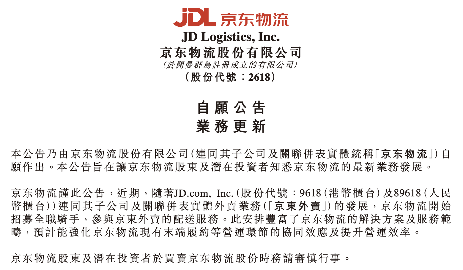 京东物流表示,此安排丰富了京东物流的解决方案及服务范 畴,预计能强化京东物流现有末端履约等营运环节的协同效应及提升营运效率。