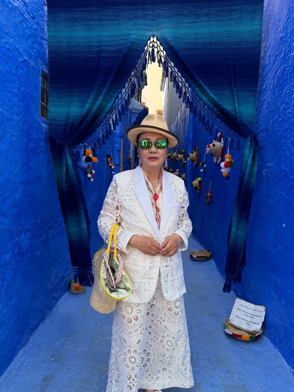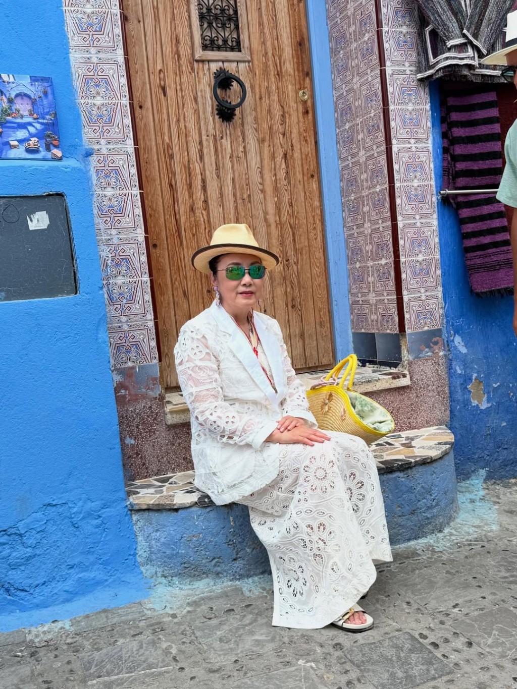 汪明荃今日在IG上载照片表示:“25/06/2025摩洛哥舍夫沙万蓝色城市”,见到穿上白色通花打扮的汪明荃,戴上草帽及太阳眼镜,加上一个La Milanesa新款草织手挽袋,走在摩洛哥的街头,一身造型好有特色。