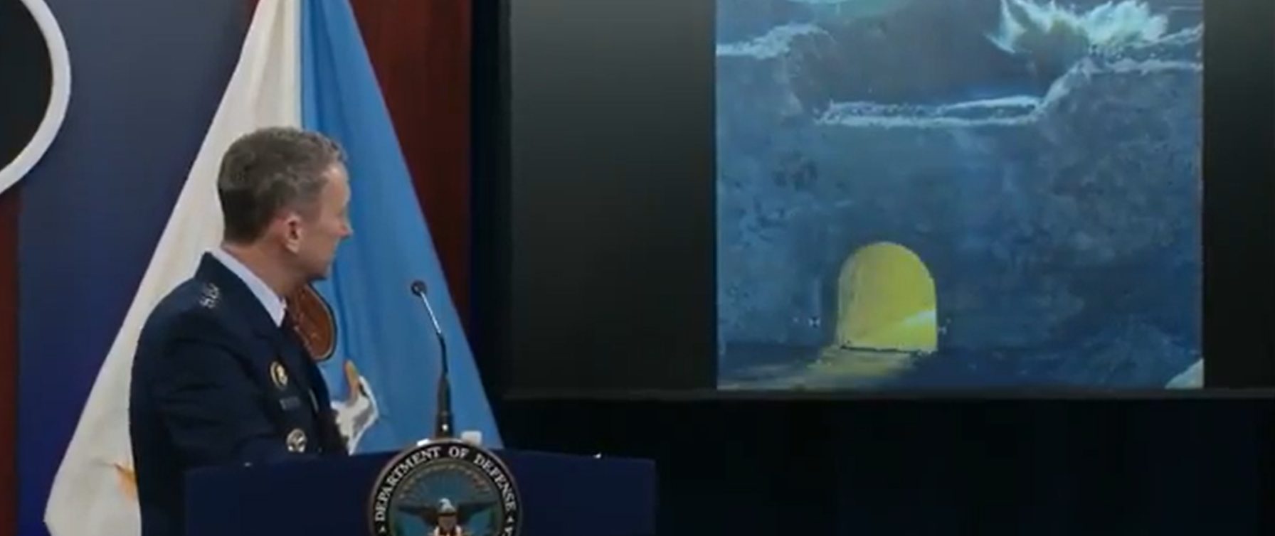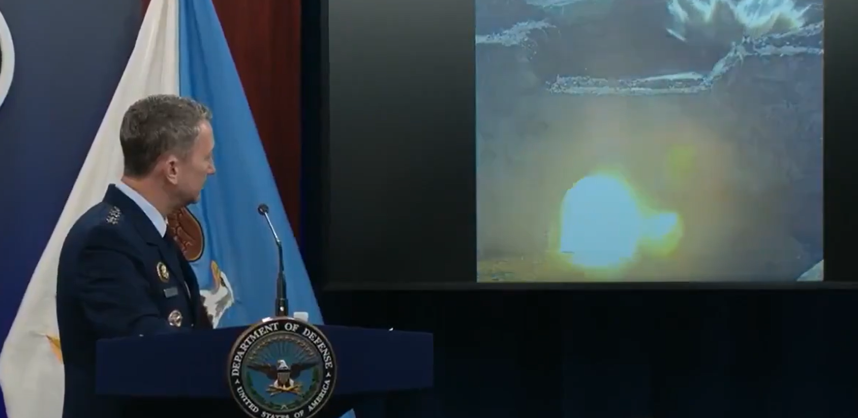 凯恩播放了一段这些巨型炸弹的测试影片。慢动作画面显示炸弹穿透疑似地下堡垒的建物,随即橘红色光芒从设施的通道冒出,然后爆出巨大火球。他说:“当然,目标内没有人,所以我们没有直接来自目标的画面。”凯恩和赫格塞斯的发言大多聚焦于福尔多设施,其他两处目标纳坦兹(Natanz)与伊斯法罕(Isfahan)未被提及。