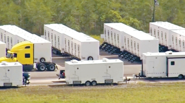 这座备受争议的移民拘留中心座落于迈阿密戴德县1条鲜有人使用的飞机跑道上。州长德桑蒂斯(Ron DeSantis)动用紧急权力征用了该地段,并花了仅约1周的时间建成,预计将有5000张床位投入使用。该设施预计每年耗资4.5亿元,已获国土安全部许可,并表示可能会补偿该州部分营运相关费用。