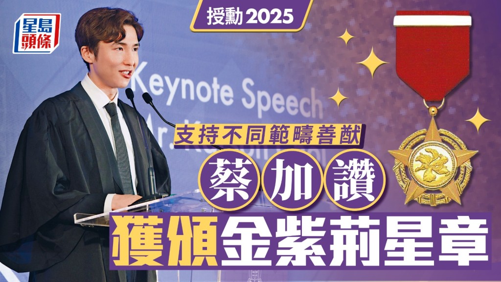 政府公布2025年授勋及委任太平绅士名单,行政长官共颁授427个勋衔及奖状,其中20人获金紫荆星章,包括星岛新闻集团主席蔡加讚。政府在嘉许语赞扬他广行善举,长期支持不同范畴的善猷,包括扶贫、安老服务、义工服务等,促进香港社会的安定和谐。他担任多个谘询及法定组织的成员,就公共行政提供真知灼见,亦致力推动青年发展,加强青年的国民身份认同,竭诚为公,贡献宏大。