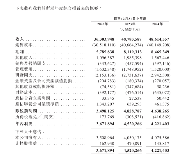招股书显示,亿纬锂能2024年营业收入达486.15亿元,同比微减0.35%,归母净利润40.76亿元,同比增长0.63%。