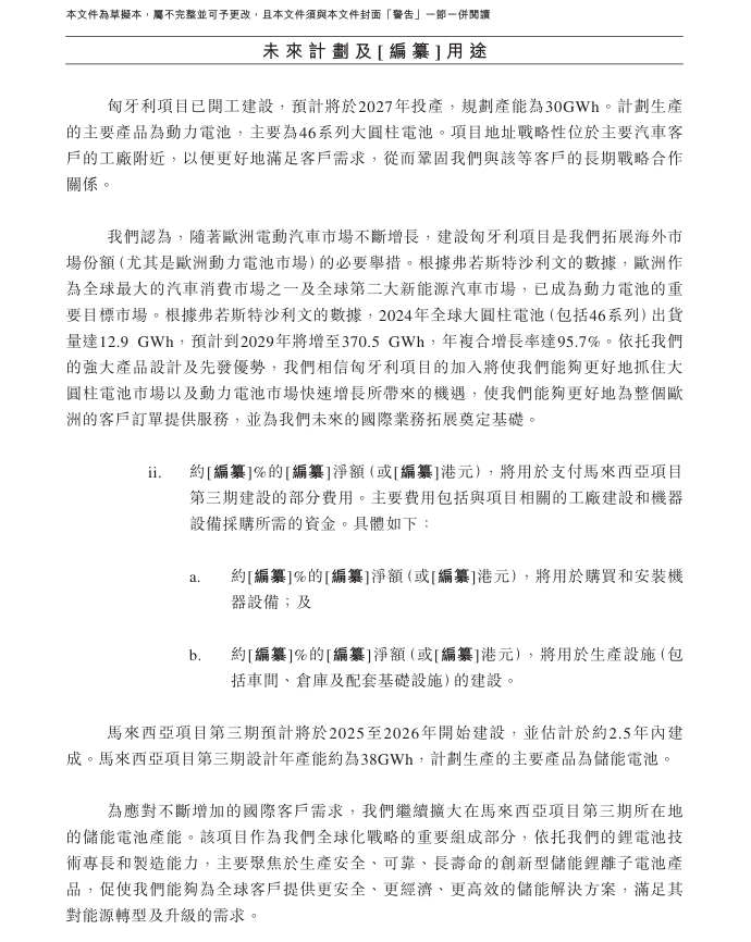 亿纬锂能此次赴港上市,拟将募资净额用于为其匈牙利生产基地的持续建设,以及马来西亚生产基地第三期建设提供部分资金。
