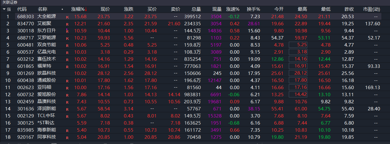 盘面上,光伏板块集体大涨,双良节能、亿晶光电、凯盛新能多股封板涨停。钢铁板块午后强势拉升,柳钢股份、重庆钢铁等盘涨停。