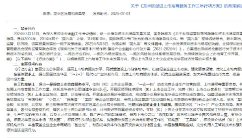 7月1日,据深圳市龙华区人民政府网站,深圳市龙华区人民政府印发《龙华区促进上市培育服务工作三年行动方案》。
