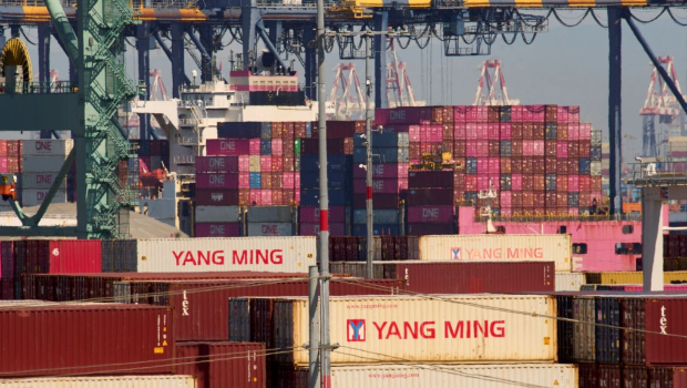 ▲特朗普关税|货柜停放在洛杉矶港。 美联社