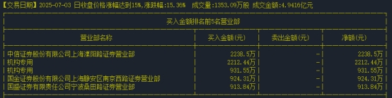 龙虎榜数据显示,前五大买卖营业部合计成交1.36亿元,净买入880.85万元。其中,中信证券上海溧阳路营业部买入2238.50万元居首,该席位是市场知名游资席位。值得注意的是,有2家机构专用席位现身买入席位,分别买入2212.44万元和931.55万元,机构专用席位净买入3143.99万元。机构的大额买入通常表明专业投资者看好该股未来的表现。