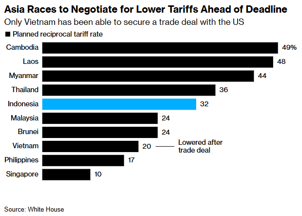 这项全面协议释放出积极信号。作为东南亚最大经济体,印尼正努力将美国威胁征收的32%关税降至低于本周越南所获20%税率的水平。美国是印尼仅次于中国的第二大出口市场。