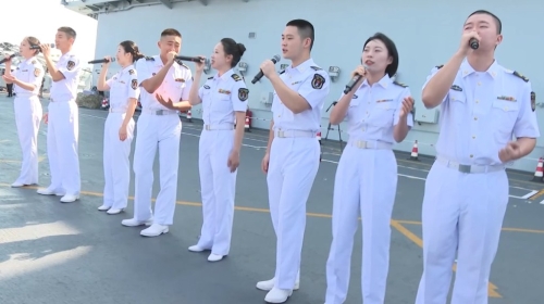 ▲舰上有多名海军官兵即场献唱《我和我的祖国》等歌曲。