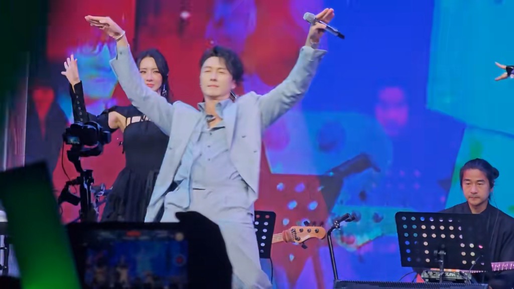 王浩信为庆祝入行20周年兼生日,昨日(5日)在广州举行《2025王浩信20周年生日音乐会—广州站》演唱会,菊梓乔也有现身支持。 二人同台合唱外,更在王浩信示范下教菊梓乔跳《大展鸿图》,穿上浅蓝色西装的王浩信,在台上跟随音乐扭动身体,又学足男团跳舞姿,舞蹈动作可谓一言难尽。