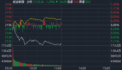 截至午间收盘,沪指报3465.05点,跌0.21%;深成指报10434.83点,跌0.70%;创指报2129.34点,跌1.25%。