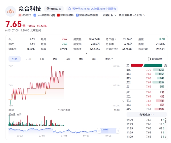 7月7日晚间,浙江众合科技股份有限公司(以下简称:众合科技,代码:000925.SZ )发布关于与专业投资机构共同投资设立空天创投基金的公告,公司计划出资1900万元联合陕西空天宏远创投等机构共同投资设立空天创投基金,基金规模为5005万元。此次投资旨在推动公司在空间信息产业的快速、稳健和可持续发展。截至8日中午收市,众合科技报7.65元,涨0.53%。