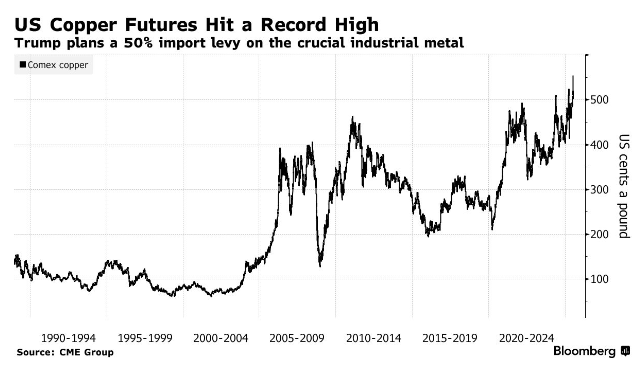智通财经APP获悉,随着美国总统特朗普表示计划对进口铜征收50%关税,纽约铜期货价格大幅上涨,这一举措可能在全球金属市场引发巨大的供应链波动。