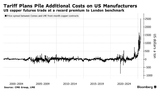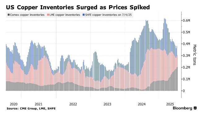 对制造商而言,目前唯一的安慰是美国本土尚有充足铜材可供采购——尽管价格令人咋舌。由于贸易商正创纪录地向美国运送铜材以套利,Comex仓库的铜库存量已超过伦敦金属交易所和上海期货交易所库存总和。