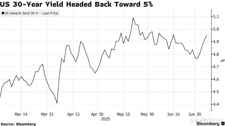 美国30年期国债收益率再度逼近5%
