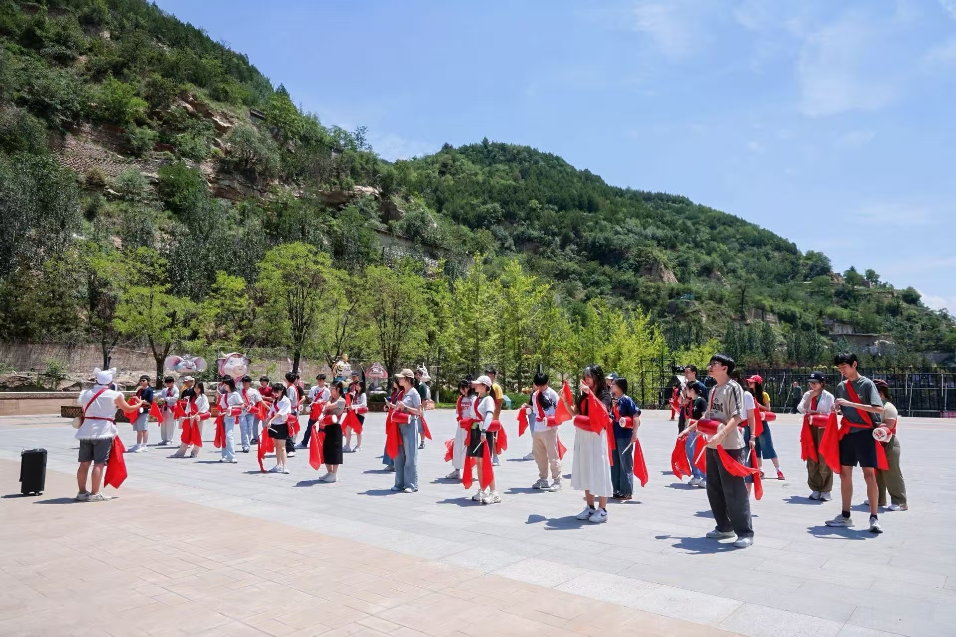 宝塔山下,香港师生挥汗如雨,在安塞腰鼓非遗传人郭伟琴的带领下,大家一板一眼地学习安塞腰鼓的动作要领:马步跳跃、侧蹬腿、前蹬腿、十字梅花、跑跳步、摇头晃脑……。黄霆轩老师说:“在宝塔山下,鼓点一响,就能感受到中国传统文化所释放出的能量,安塞腰鼓不仅仅是陕北这块古老的黄土地的地域文化信息,更让我们感受到了中华民族坚毅不屈、意气风发、蓬勃向上、积极进取的精神象征。”汤紫怡老师则对黄土高原的生态建设赞不绝口,“从西安到延安,高速公路两侧是青翠欲滴的绿色植被,颠覆了我对黄土高原的原始认知,我深知这就是书写在祖国大地上的生态文明建设成果,这也是‘绿水青山就是金山银山’的真实写照”。