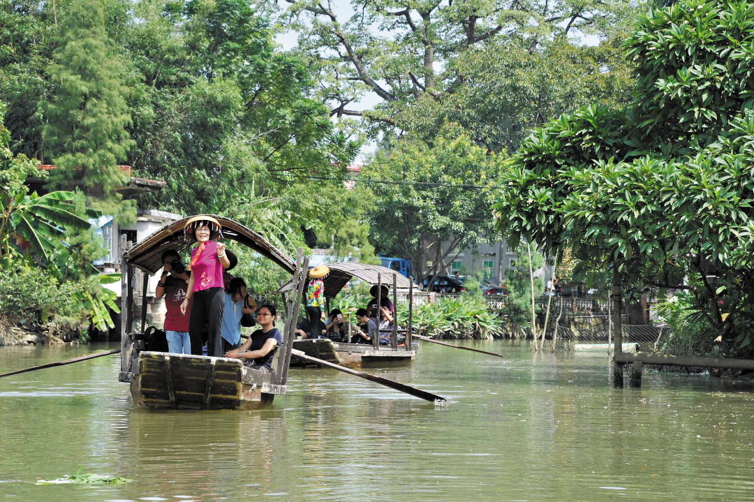 通过控源截污、清污分流等整治手段,融入文化游船、滨水戏台、水上花市等岭南文化元素,荔枝湾涌重现了“一湾溪水绿,两岸荔枝红”的美景。李凯帆说:“复绿的荔枝湾涌连着荔湾湖内的涌段,龙船水路超1.5公里,让西关龙船文化得以延续。”泮塘村的龙船“朋友圈”逐渐扩大,龙船文化氛围越来越浓厚。修复后的文塔、龙津桥等古建筑与河涌景观相得益彰,沿岸还开设了民俗博物馆、特色小吃店等,成为展示岭南文化的重要窗口。