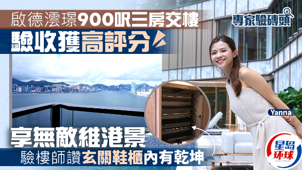 华润置地(海外)及保利置业(0119)合作发展的启德澐璟(PANO HARBOUR) 陆续交楼,今集《专家验砖头》应业主委托,验收一个6座高层三房一套连储物房单位,实用面积903平方呎。验楼师锺智刚(锺Sir)验收后,给予单位高评分之余,更特意大赞玄关位置旋转鞋柜及收纳柜,可以增加收纳量,而且内附空气净化机,十分贴心。