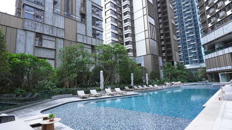 ▲住客会所CLUB PANO连园林占地约7万平方呎,会所设施多元化,当中包括室外游泳池及室内游泳池。