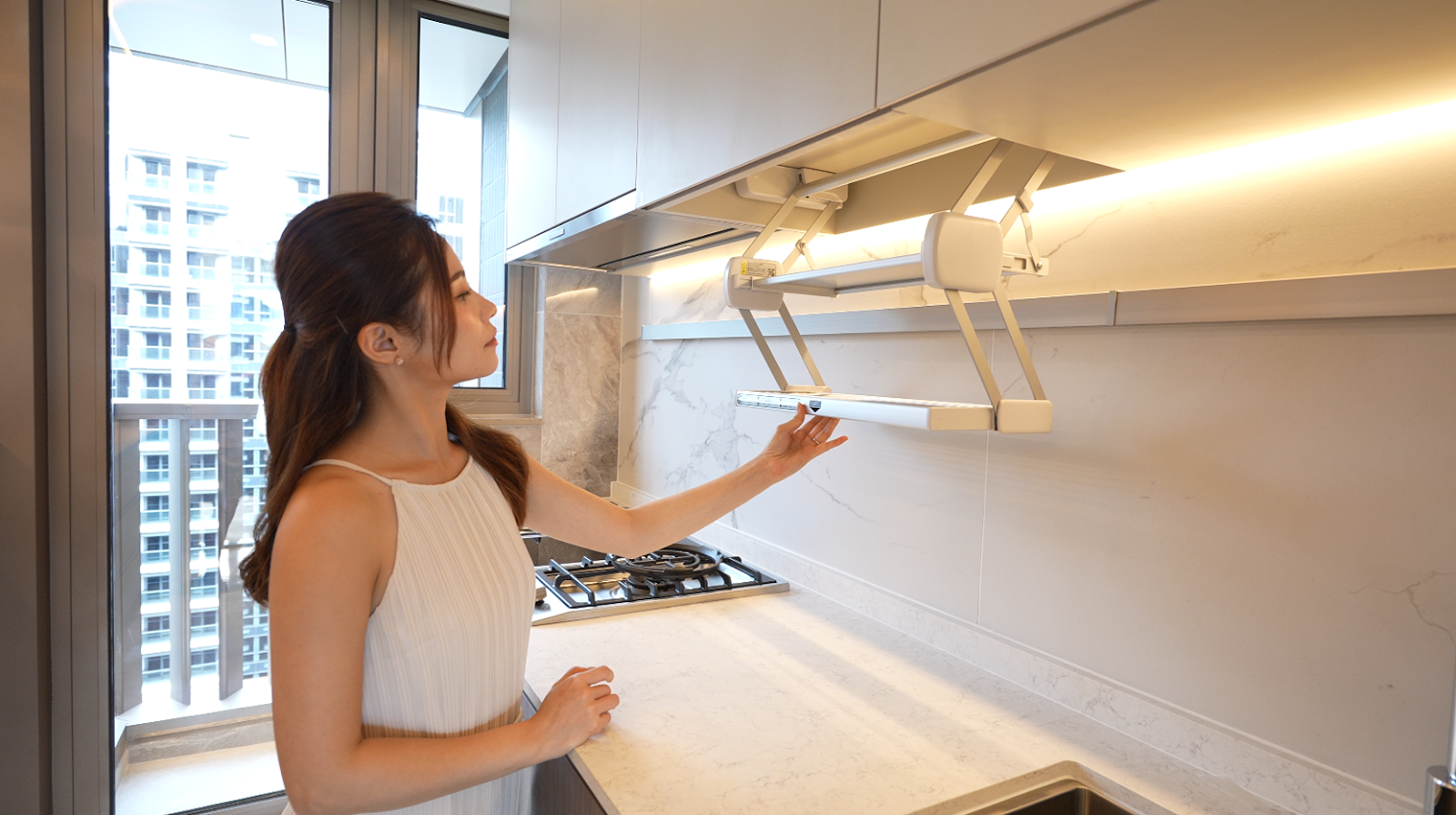 单位经锺Sir检查各处细节后,最终给予96分的高分评价。锺Sir更大赞两个贴心设计。其一是玄关位置特设旋转入墙鞋柜,柜内装置意大利制造空气净化机,更配备扩香功能,令鞋柜保持清新。其二是开则四正,没有大单位常见的长走廊设计,令空间更加实用。