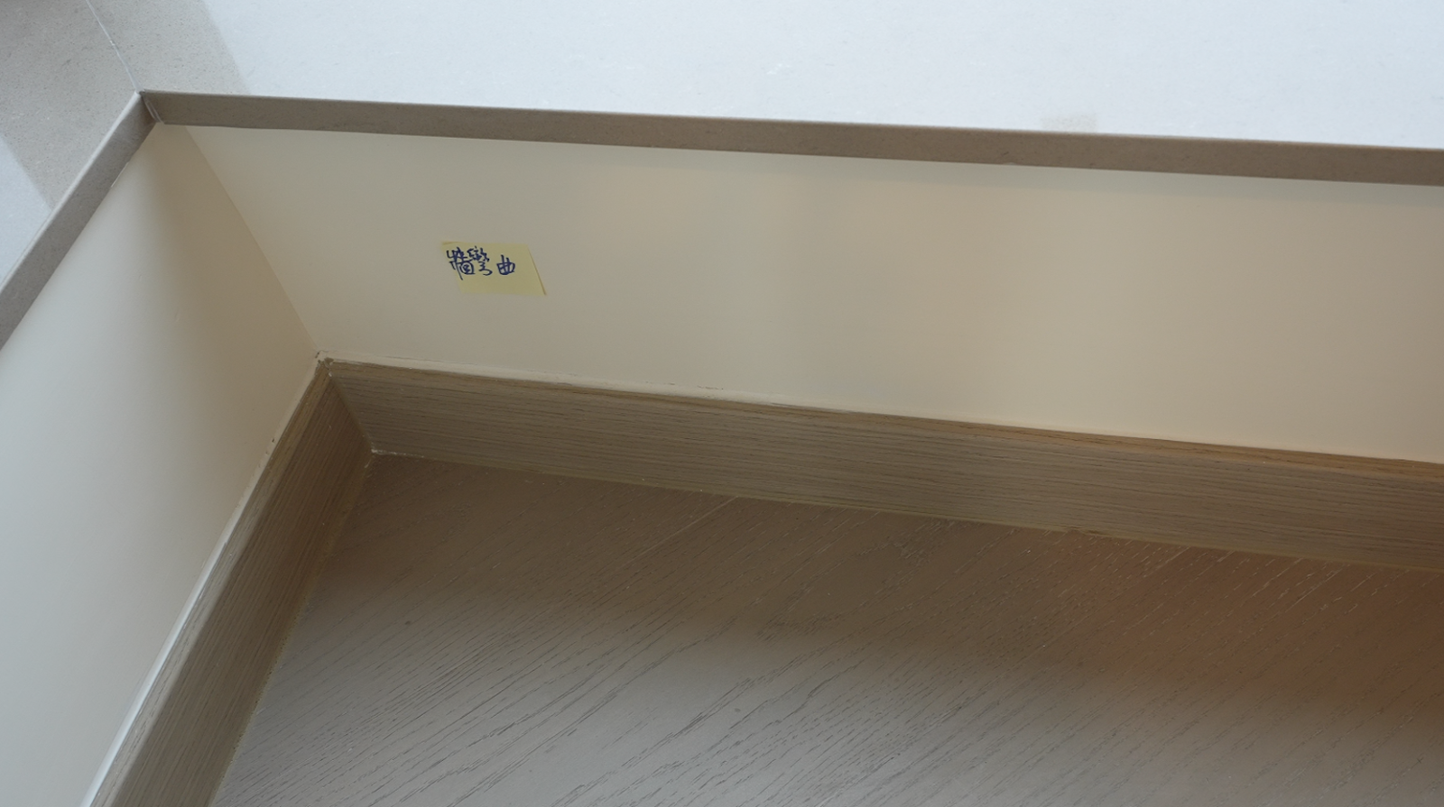 其二,其中一间睡房的“墙弯曲”。他指其中一幅墙身有少许不太直,按验楼标准而言,允许偏差只有3毫米,但是由于“墙弯曲”的位置是窗口底,日后或被床隐藏遮住,即使不维修亦影响不大。其三,有部份玻璃轻微刮花,也是普遍的小问题。