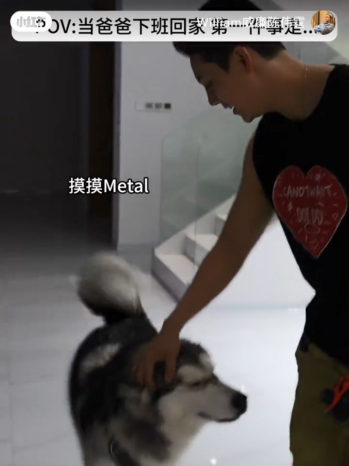 陈伟霆有几只爱犬,他不时在社交平台分享与狗狗的合照及互动影片。日前他在小红书上载在家中教狗的影片,片中可见,陈伟霆将巨型爱犬从狗笼放出来,估计爱犬是刚刚回到家中。陈伟霆将狗笼打开,爱犬即奔往主人,可见感情极好。陈伟霆在屋内指导巨型爱犬跟指令做动作,网民除了赞狗狗好聪明又可爱,更留意到陈伟霆独立屋内的楼梯口好宽敞。