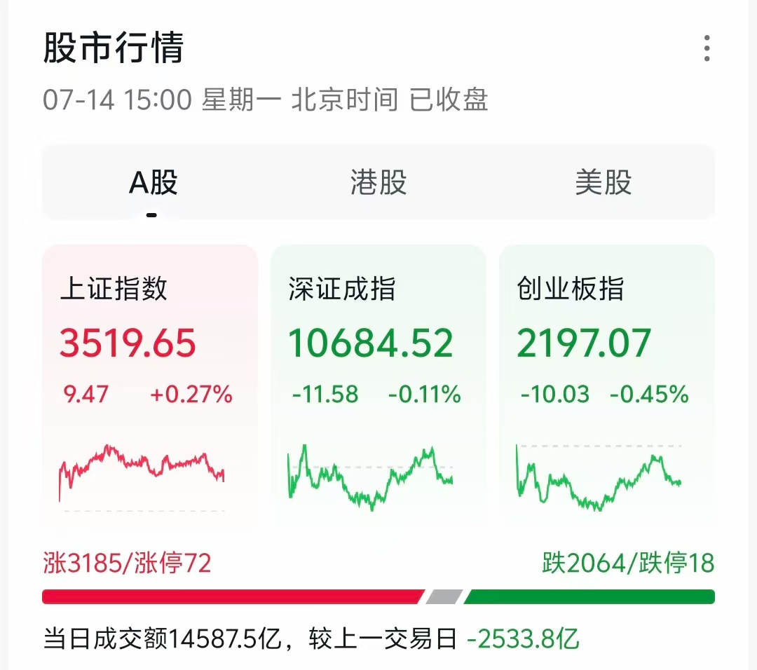 7月14日消息,指数全天走势分化,沪指震荡收盘微涨。