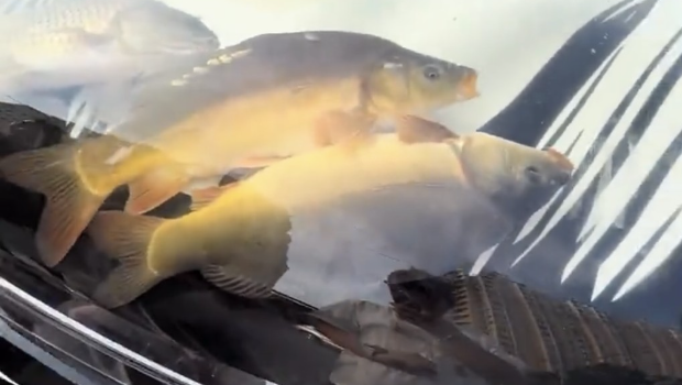 该网友刘先生称,他平时喜欢钓鱼,有次钓鱼时忘记带水桶,突发奇想就将鱼和水直接放到自家车辆引擎盖的车膜中。至于如何操作,刘先生称从车辆机盖处将水和鱼直接倒进去就可以。
